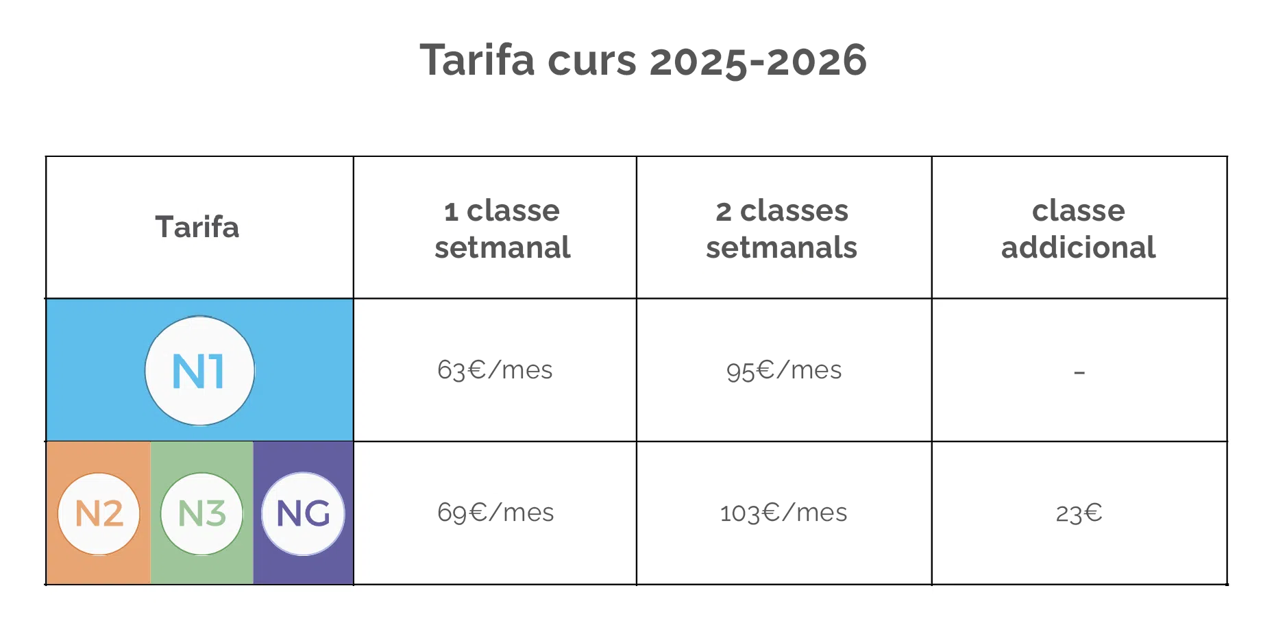 Els nous alumnes de nivell que vulguin provar les nostres classes, podran fer-ho durant el mes de setembre per 30 € (4 classes).